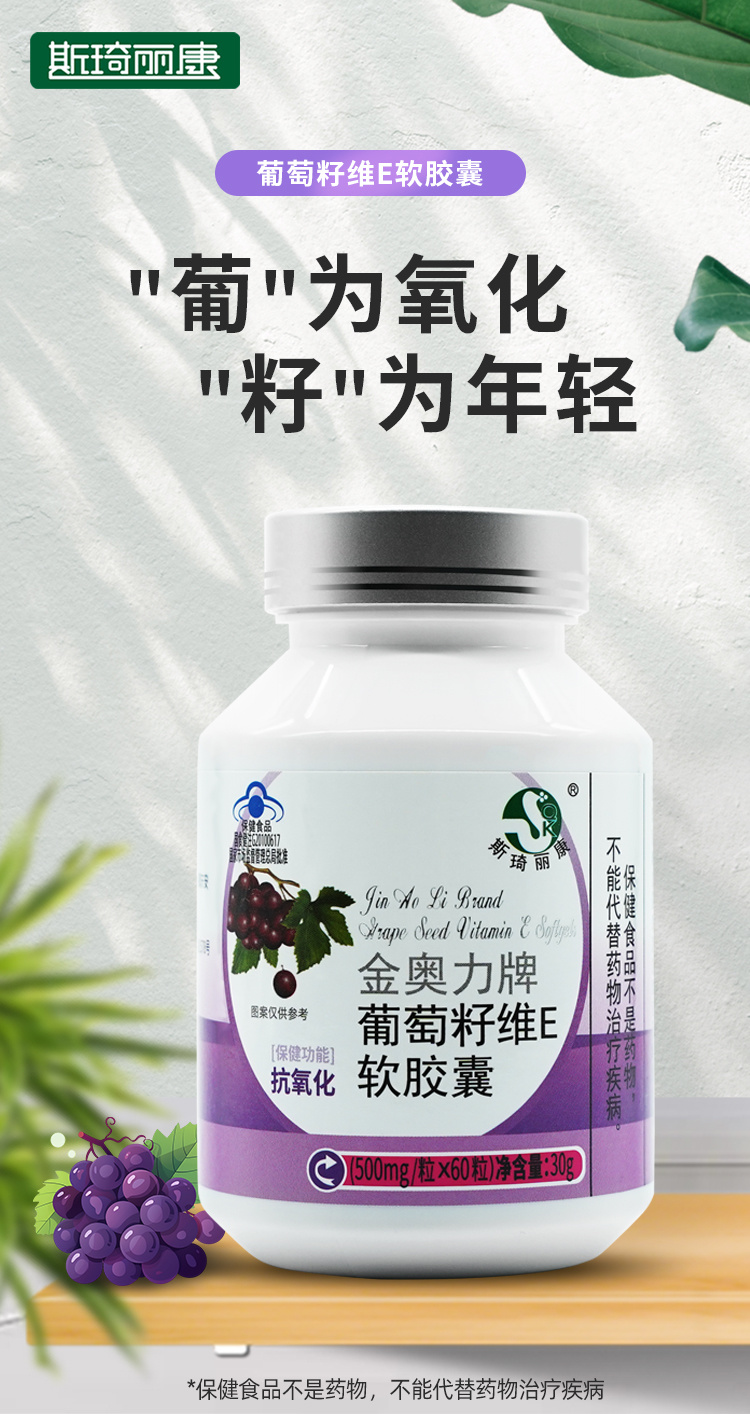 斯琦丽康金奥力牌葡萄籽维E软胶囊60粒