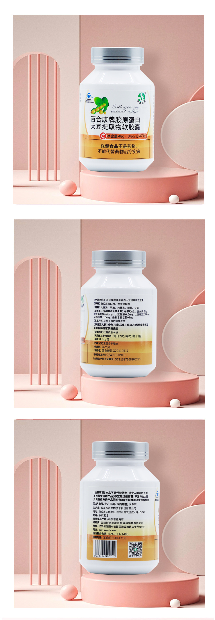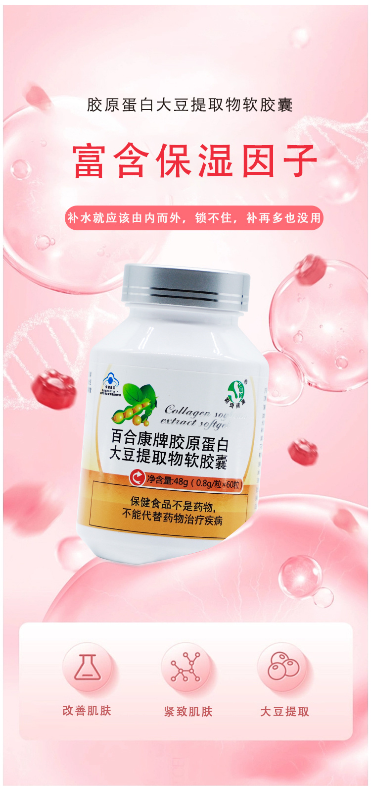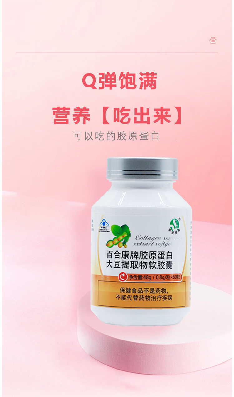 斯琦丽康百合康牌胶原蛋白大豆提取物软胶囊60粒