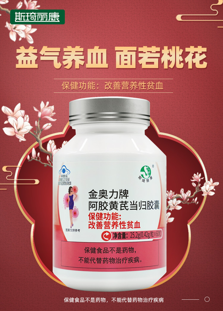 斯琦丽康金奥力牌阿胶黄芪当归胶囊60粒