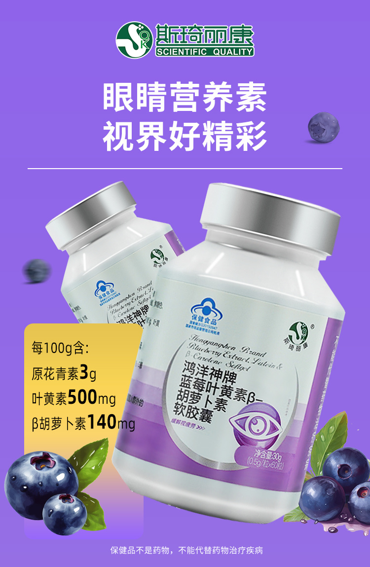 斯琦丽康鸿洋神牌蓝莓叶黄素β-胡萝卜素软胶囊60粒