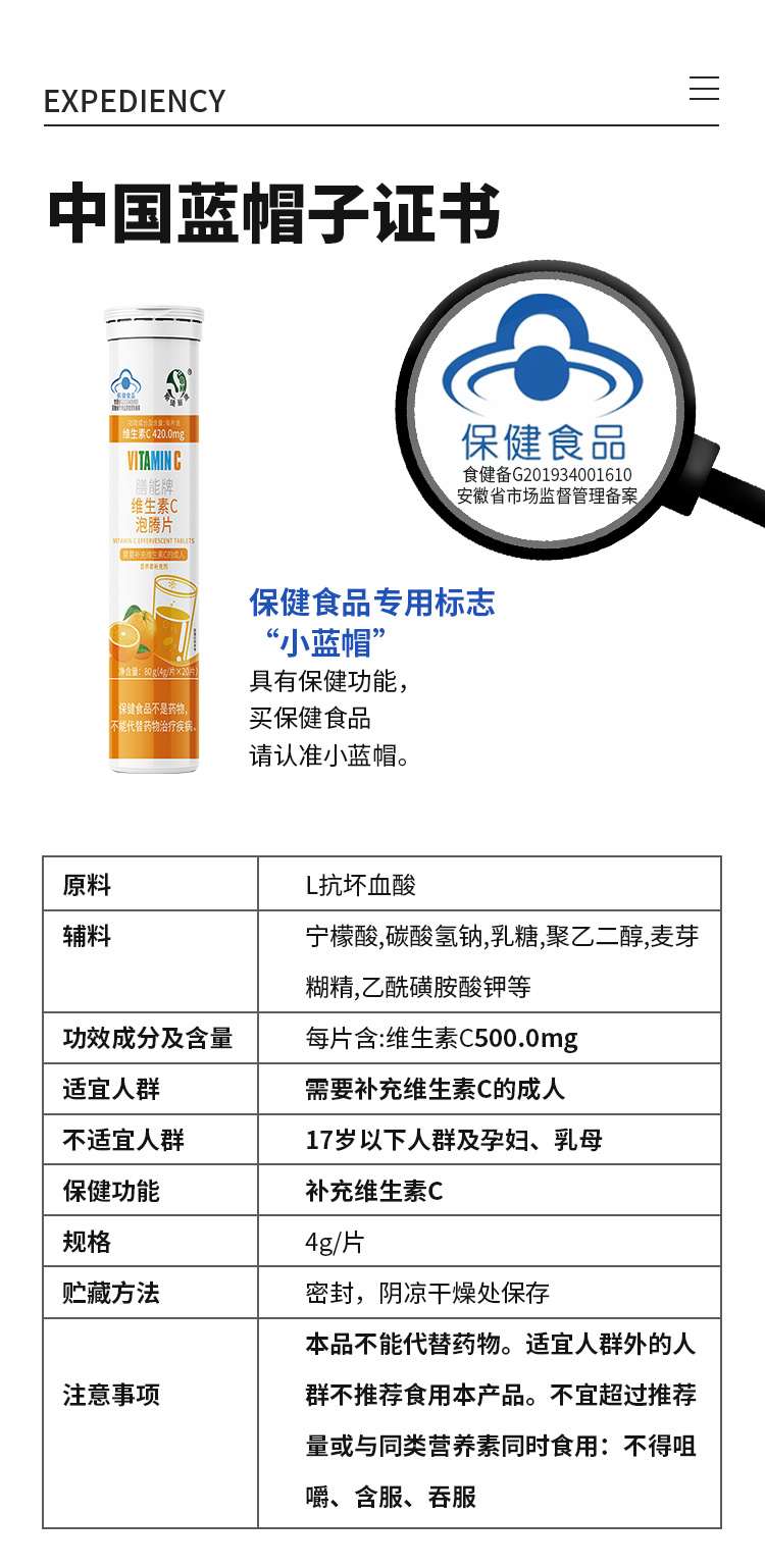 斯琦丽康膳能牌维生素C泡腾片(成人)4g/片*20片