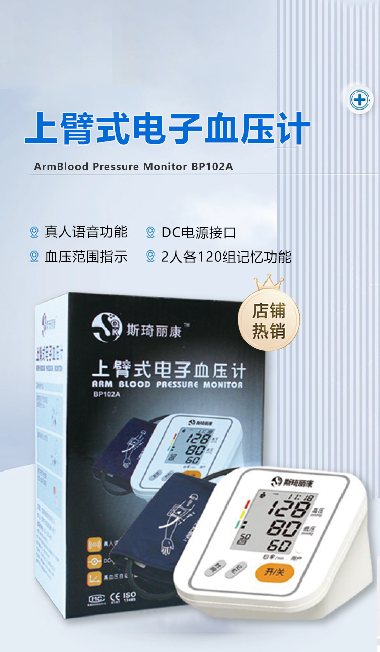 斯琦丽康上臂式电子血压计BP102A(黑盒)