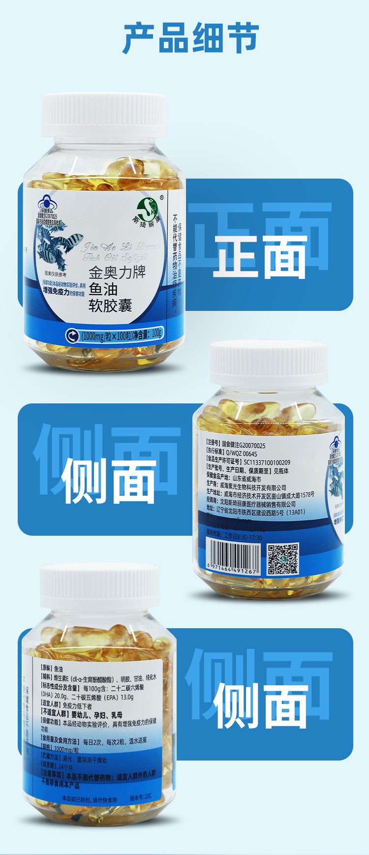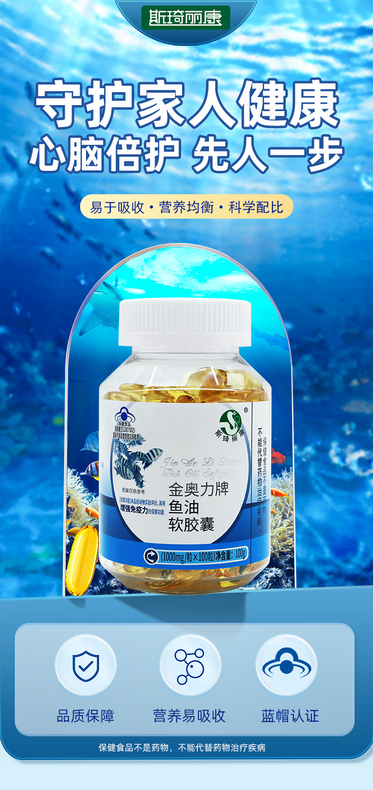 斯琦丽康金奥力牌鱼油软胶囊100粒