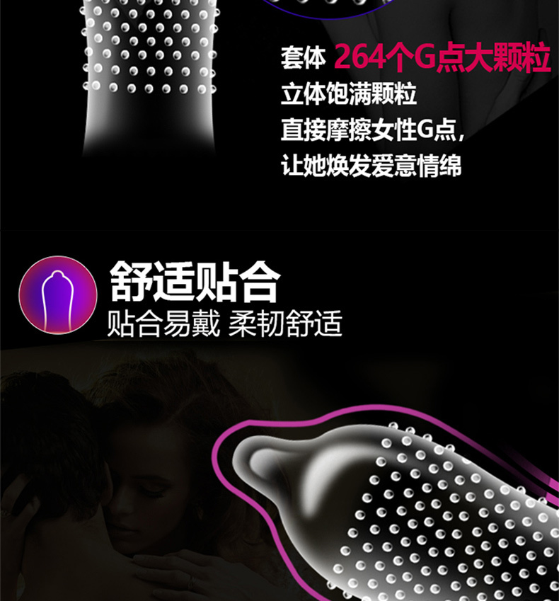 悍将天然乳胶橡胶避孕套3D大颗粒3只