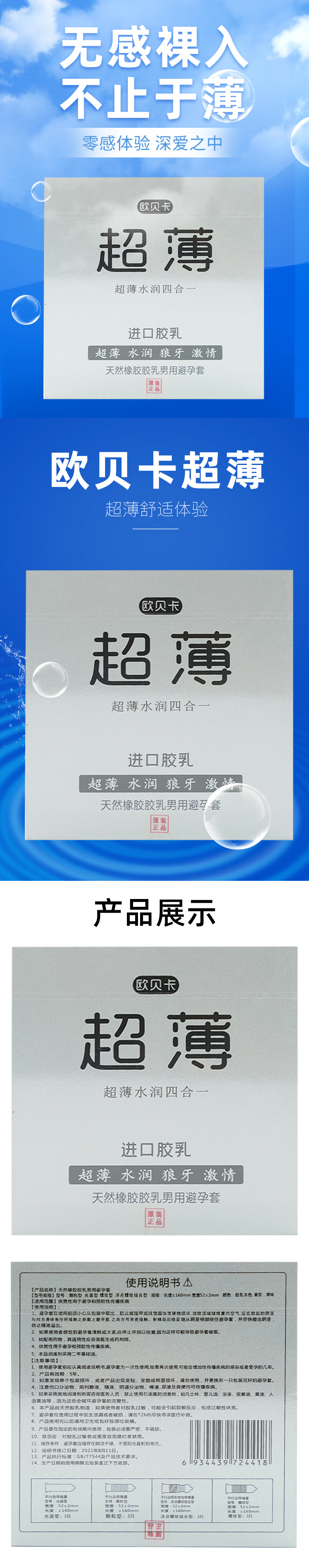 欧贝卡超薄水润四合一12只装(木盒银)
