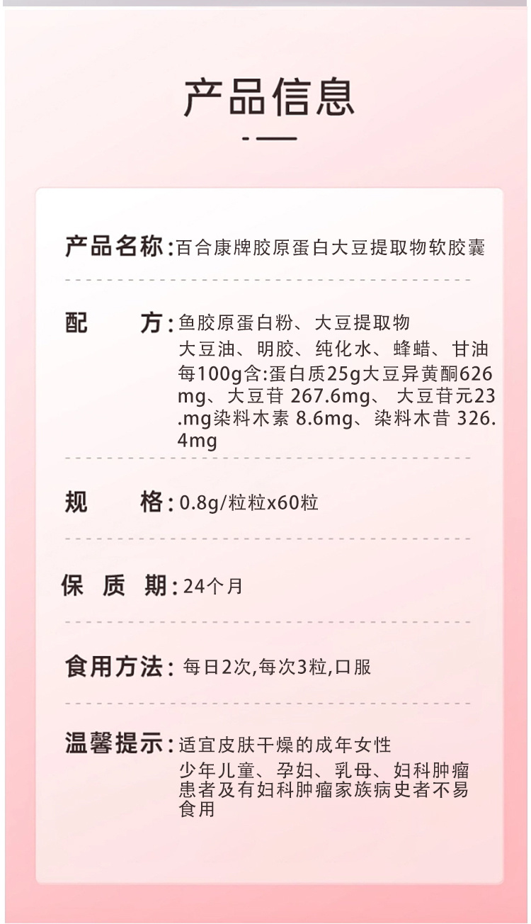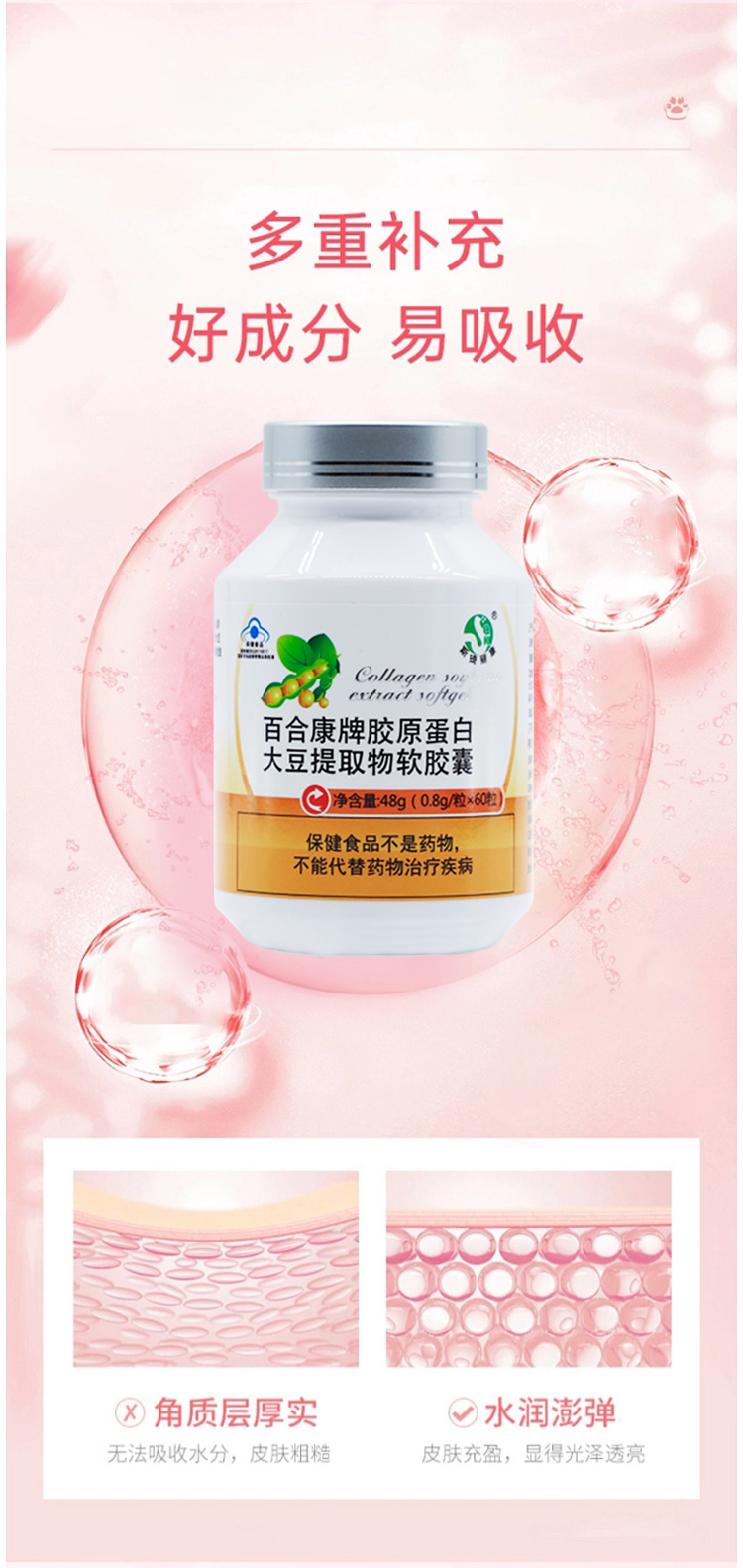 斯琦丽康百合康牌胶原蛋白大豆提取物软胶囊60粒