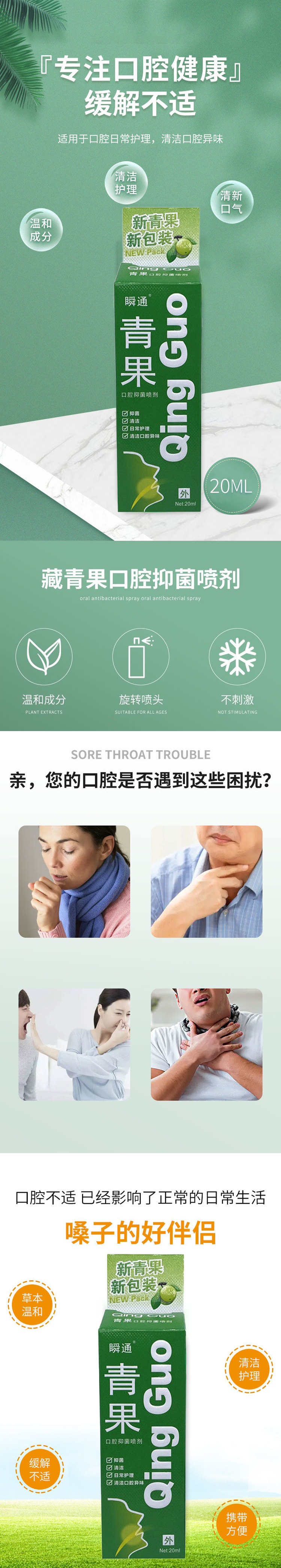 瞬通青果口腔抑菌喷剂20ml