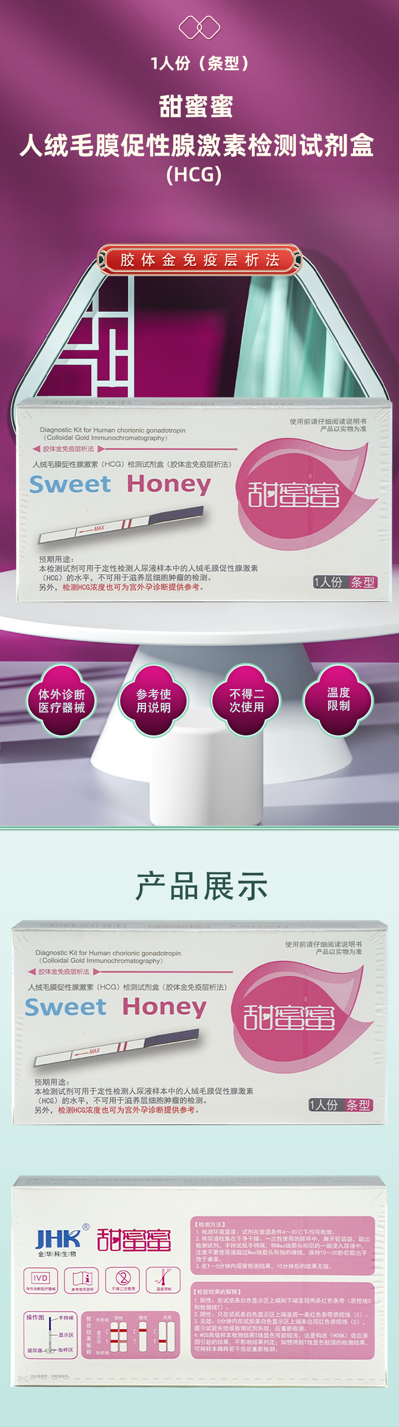甜蜜蜜人绒毛膜促性腺激素检测剂盒1人条型
