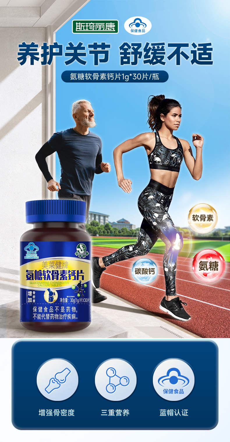 斯琦丽康美莱健牌氨糖软骨素钙片30片