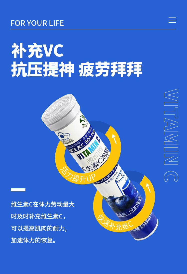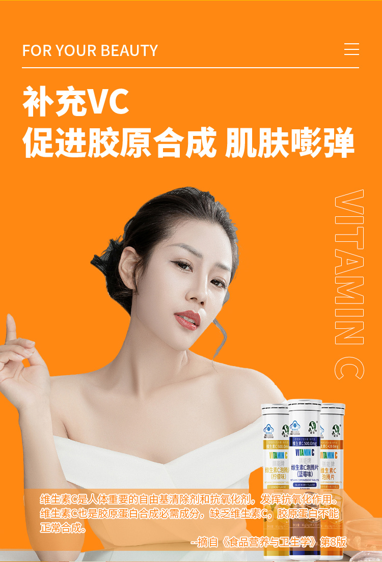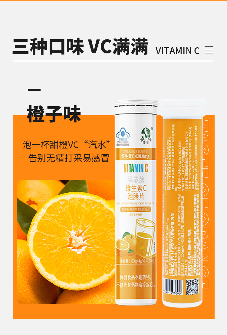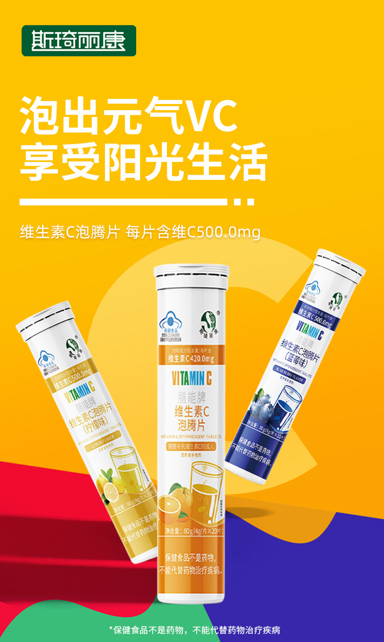斯琦丽康膳能牌维生素C泡腾片(成人)4g/片*20片