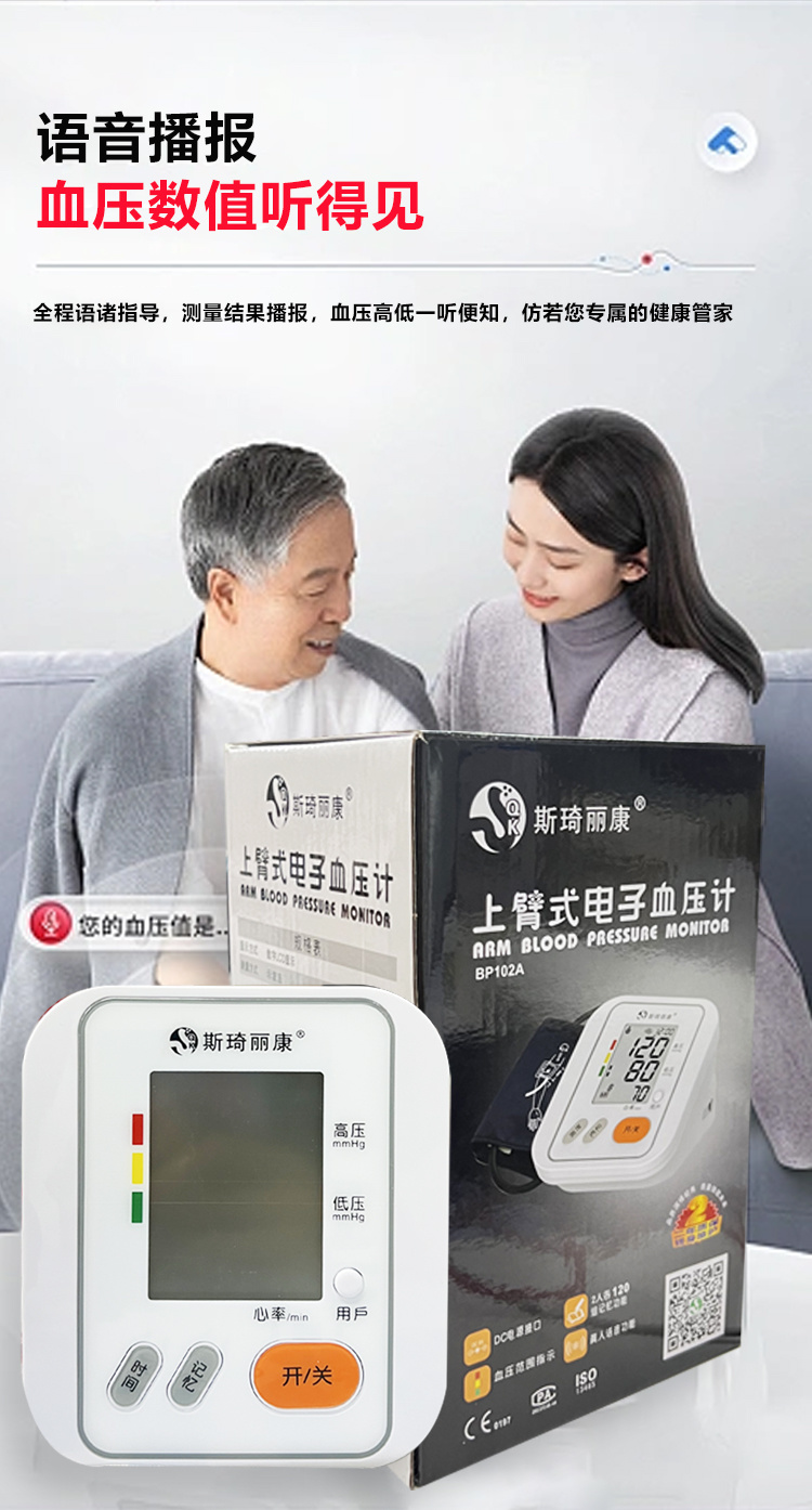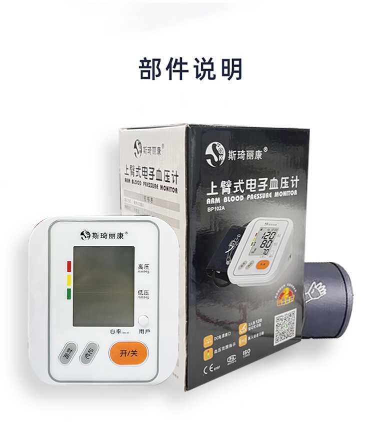 斯琦丽康上臂式电子血压计BP102A(黑盒)