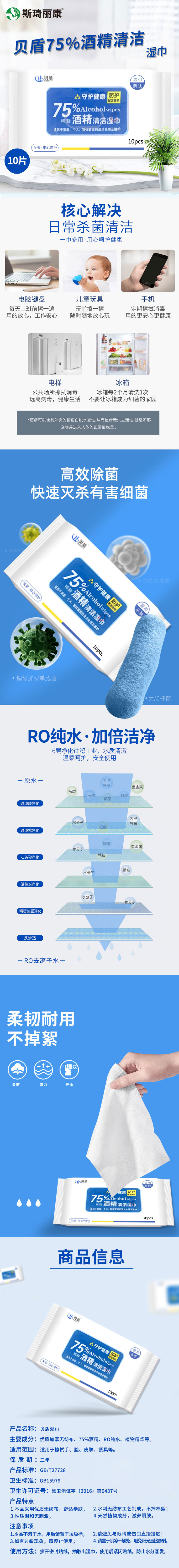 贝盾75%酒精清洁湿巾10片