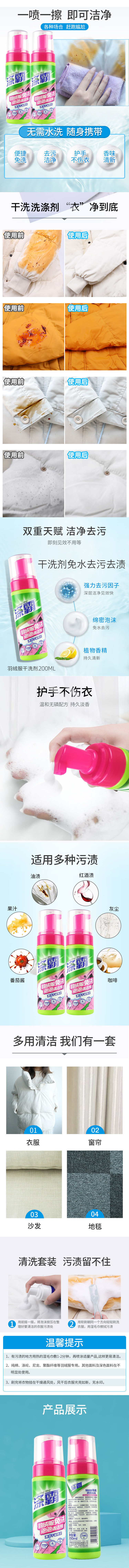 涤霸羽绒服免洗泡泡清洁剂200ml