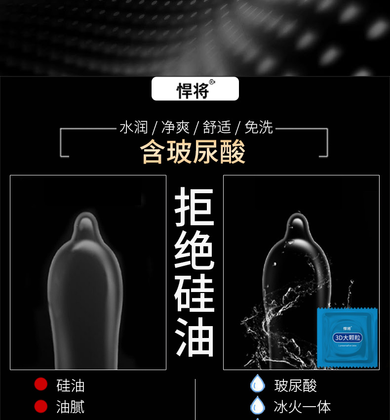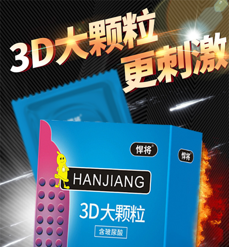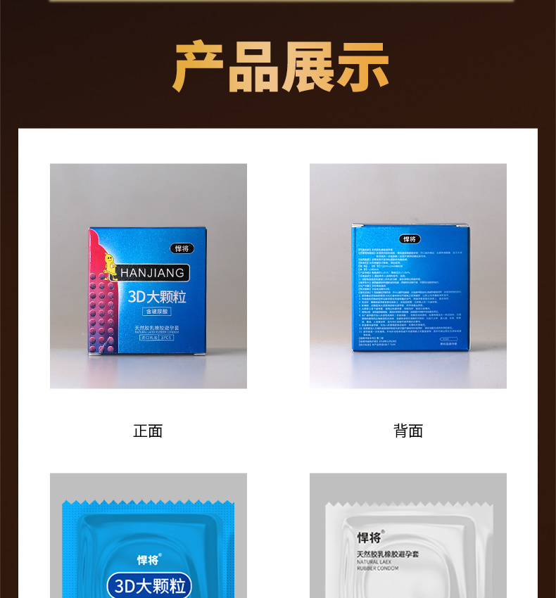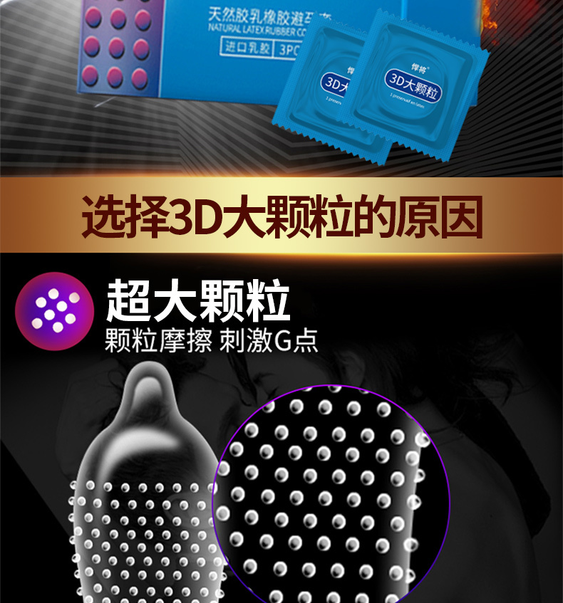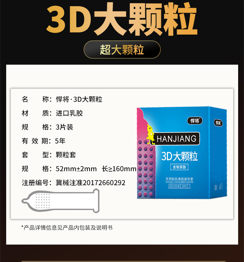 悍将天然乳胶橡胶避孕套3D大颗粒3只